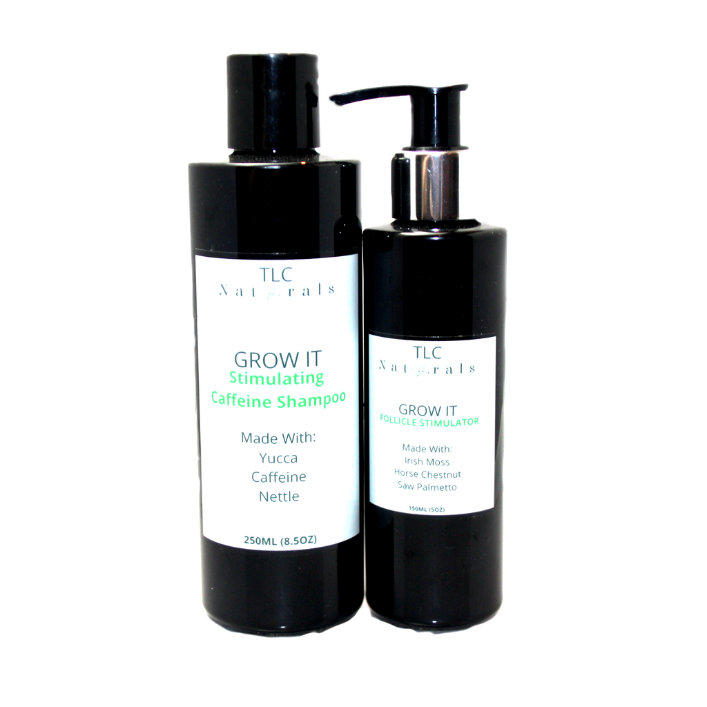 The Duo Bundle includes the Grow It Follicle Stimulator and the Grow It Caffeine Shampoo PLUS, a sweet 10% DISCOUNT!
